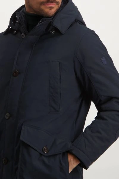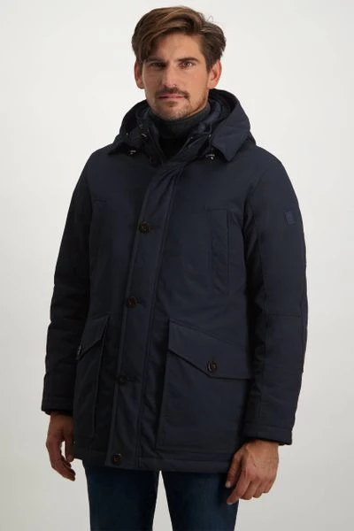 Met deze jas van State of Art komt je het hele seizoen stijlvol voor de dag. De jas heeft een Regular-Fit pasvorm en valt normaal om het bovenlichaam. De herenjas is voorzien van een ritssluiting, twee steekzakken, twee borstzakken, twee binnenzakken en een verstelbare capuchon. De jas is afgewerkt met een waterafstotende coating, waardoor de jas geschikt is voor verschillende weersomstandigheden.